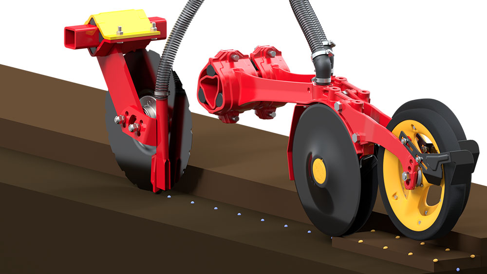 La version InLine place un faible taux d'engrais dans une sortie séparée avec la semence dans le coutre, permettant à la plante d'absorber rapidement les éléments nutritifs. En séparant durant le transport la semence et l'engrais, ces deux systèmes de distribution n'interfèrent pas l'un avec l'autre. La surveillance est accrue et très précise.