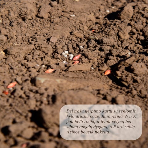 10. P kiekį papildykite N, K ir S po sėjos. |