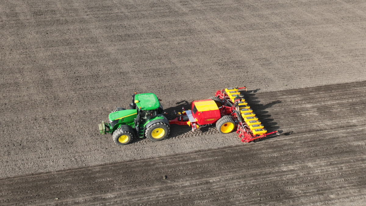 Po 2023 m. rugpjūčio mėn. Jutlandijios (Jylland) regioną užklupusių liūčių Jensas Blachas nusprendė, kad žieminiai rapsai geriausiai įsitvirtina suarus dirvą. Po arimo tereikėjo pravažiuoti su ūkio Carrier XL ir paruošti sėklų guoliavietę žieminių rapsų sėjai Tempo tiksliąja sėjamąja.