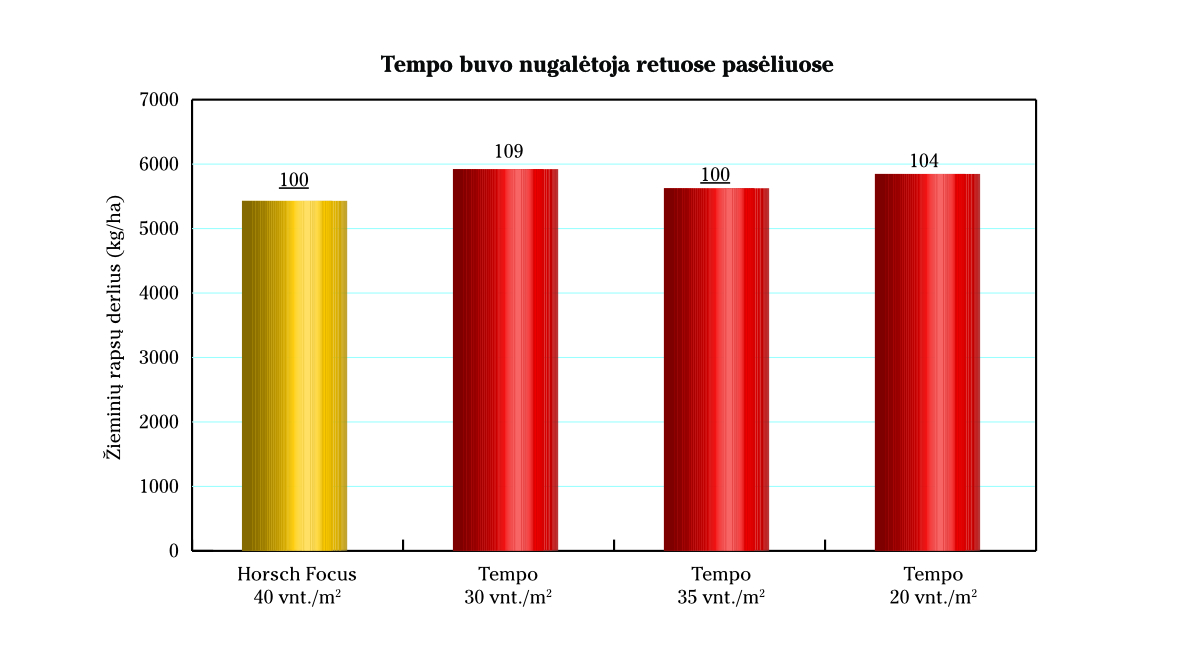 Plote, kuriame Tempo pasėjo žieminius rapsus tik su 20 sėklų į kvadratinį metrą, rapsų derlius buvo daugiau kaip 200 kg didesnis nei ten, kur į kvadratinį metrą buvo pasėtos 35 sėklos. Taigi, reti pasėliai davė didesnį derlių ir tai tapo svariu argumentu tiksliai sėjai su Tempo sėjamąja, kuria galima pasėti mažesnį augalų kiekį.