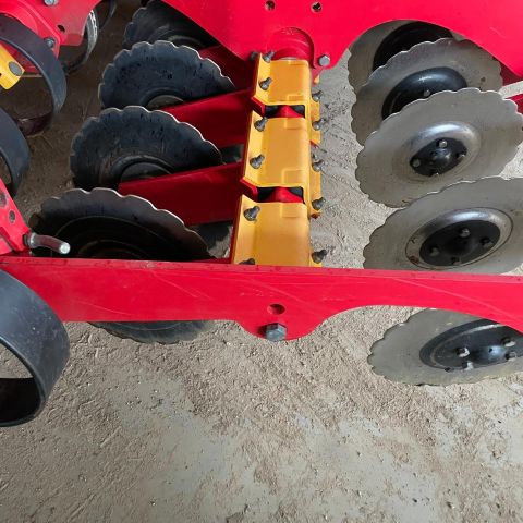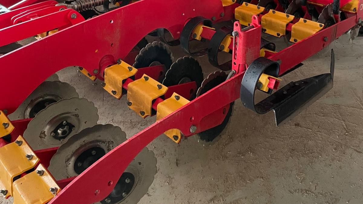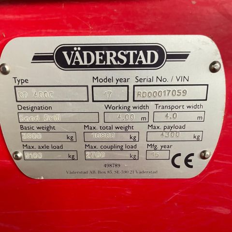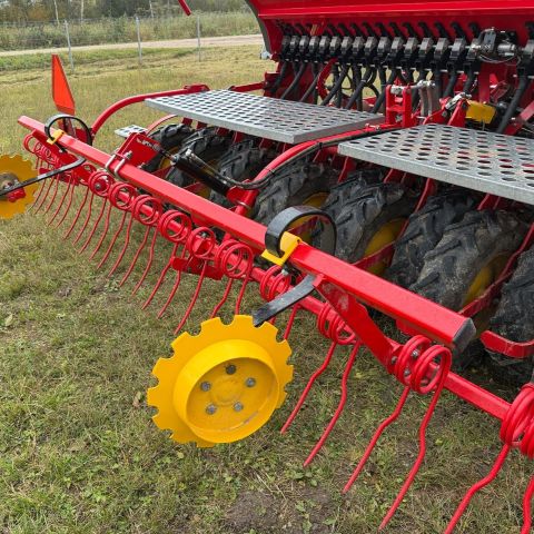 Komplektacija: Darbinis plotis: 4 m. "LIGHT SYSTEM DISC" sistema - diskinis dviejų eilių žemės įdirbimas ir 1 eilė spyruoklių su plačiais noragėliais žemės lyginimui. Sėklos ir trąšų įterpimas diskais. Gale naujo modelio ratinis volas "OFF SET" ir akėtėlės. Su trąšų įterpimu. El. technologinės vėžės. Važiavimo greitis matuojamas su radaru. Prikabinimo mechanizmas su ratais (ratai su traktoriaus sekimo mechanizmu). Valdymas Vaderstad kompiuteriu. Elektrinis trąšų ir sėklos normos reguliavimas. Prikabinama. 2017 m. Pirkta nauja Lietuvoje. Dirbusi ekologiniame ūkyje, labai tvarkinga sėjamoji, trąšos nenaudotos, rūdžių nėra. Ne sezono metu laikoma angare, technologinių vėžių ženklintuvai nauji/nenaudoti (dabar uždėti).